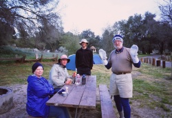 24日、ようやくカリフォルニアらしい日差しが戻る中、レイク・モレナを後にして歩を進める。この日の行程は12マイル。早めにキャンプ場にテントを張っていると車でやってきたおっさん親子二人に声をかけられる。PCTハイカーだというとビールやらシャケ缶やら山のように持ち出してきて歓待される。どうやら、この父親のほうが今年PCTに挑戦するらしいが、どうも変わったおっさんでバックパックは持たずに必要な装備はすべてフィッシング・ジャケットのポケットに。水タンクは手に持って歩き、常時タバコを吸っていないと狂ってしまう(本人談)らしい。テント・寝袋・雨具は使わず、ノース・フェイスの高所服を持ち出してきて「これで完璧なんだよ」と嬉しそうに語っている。