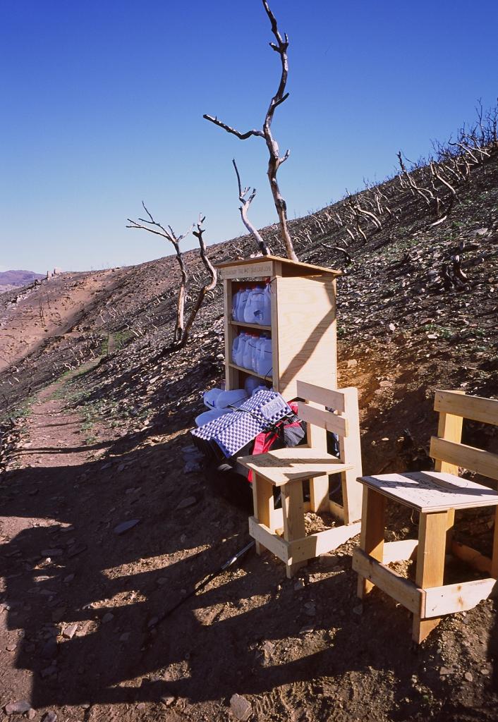 したがって、その日の行程を考えるときには、まず水場を確認することになる。地図・データブック・ハイカー同士での口コミの情報、全てを総合して水のありかを探す。トレイル上を流れる沢や泉、キャンプ場などの人工施設、そして、トレイルエンジェルと呼ばれるボランティア達が補給してくれる水場のありかと、区間距離を計算し、その結果としてその日の行程及びどれだけの水を背負っていけばいいかを算出するのだ。このあたりでは次の水場まで20マイル(32km)以上というのはざらだったので、1泊2日分+αの水を計算して背負うこともしばしばだ。