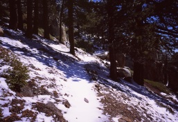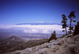 しかし、午後からトレイルがサン・ワシント山脈(SAN JACINTO MOUNTAINS)にさしかかるころになると、状況が一変した。この日の行程は標高約1500mの谷沿いから、一気に2100m超の山頂近くへ登るコースだったが、ちょうど稜線に差し掛かるあたりで天候は本格的に荒れだした。5月のカリフォルニアに典型的だと聞かされてきた遅いストーム(低気圧嵐)の襲来だ。トレイルは完全に雲の中に入り、視界はせいぜい50mほど。さえぎる物の無い稜線には正面を向いていられないほどの風が吹きつけ、冷たい雨が容赦なく叩きつける。日本の山にたとえるならば、秋から初冬の北アルプスや谷川岳で雨にたたられたといったところだろうか。気温は5〜6℃、風のために体感気温は氷点下近い。