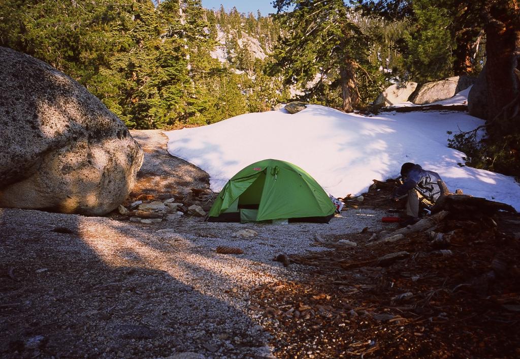 結局この日は潅木に囲まれたスイッチバック(つづら折)の折り返しの部分にかろうじて風を防げるスペースを見つけ、なりふりかまわずテントを張ってもぐりこんだ。寒さで歯の根もあわず、危険なのはわかっていたがテントの前室部分で炊事をして暖をとった。濡れた雨具を隅にぶん投げ、乾いた衣類全てを着込み、お茶を沸かして煙草に火をつける。煙草を吸えて本当に良かった、とこの日しみじみと思った。