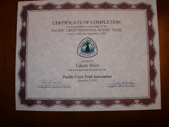 PCTを歩いて、自分の歩いたデータをPCTAに報告すると。こんなものがもらえます。 証明書とはいっても自己申告制なのですが、やはり嬉しいものです。 PCTAに問い合わせたところ、これを申請した日本人は一応私が初めてらしいのですが・・・